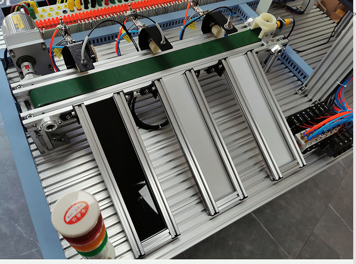 模塊、變頻器模塊、按鈕模塊、電源模塊、模擬生產(chǎn)設(shè)備實訓(xùn)模塊(包含上料單元、皮帶輸送檢測單元、氣動機(jī)械手搬運單元、物料傳送倉儲單元)、觸摸屏、接線端子排和各種傳感器等組成。采用開放式和拆裝式結(jié)構(gòu),可根據(jù)現(xiàn)有的機(jī)械部件組裝生產(chǎn)設(shè)備,使整個裝置能夠靈活的按實訓(xùn)教學(xué)或競賽要求組裝具有生產(chǎn)功能的光機(jī)電一體化設(shè)備。模塊采用工業(yè)標(biāo)準(zhǔn)結(jié)構(gòu)及抽屜式模塊放置架,互換性強(qiáng)。