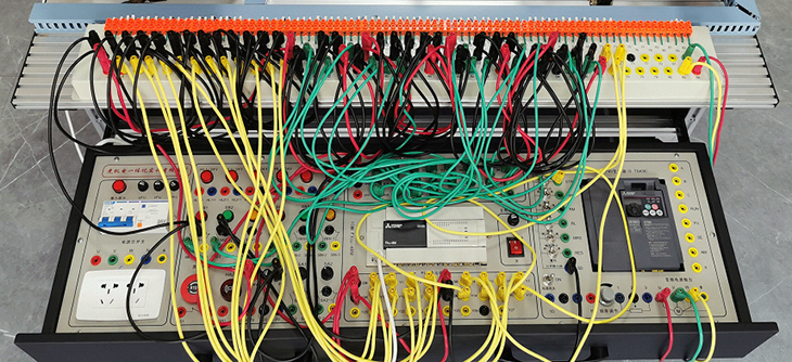 3.開放性:該實驗裝置PLC模塊I/O端子、變頻器的接線端子、各常用模塊與PLC的連接端子、傳感器、按鈕開關(guān)、指示燈元件等端子全部開放,均采用護(hù)套插座導(dǎo)線連接,可進(jìn)行電氣線路控制、電氣線路設(shè)計等內(nèi)容實訓(xùn)。